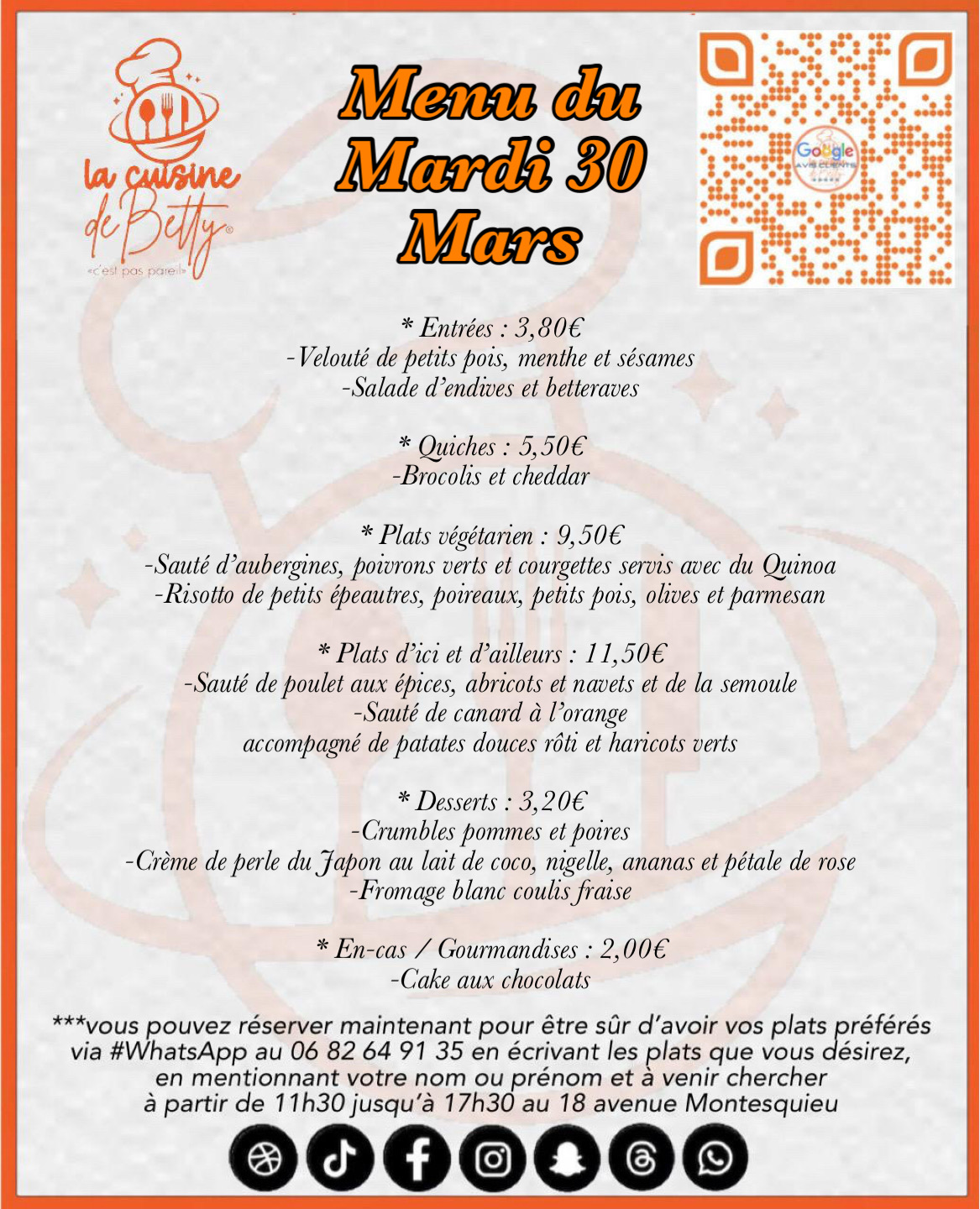 Cuisinière depuis 2013, la cheffe Bon Betty a enfin ouvert son restaurant en novembre 2024 pour vous faire partager des recettes variées et savoureuses inspirées de différentes cultures d’ici et d’ailleurs avec sa touche personnelle et passionnée.